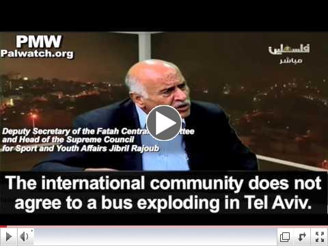 According to Rajoub, it is the international community's message to the PA, possibly through its silence, that it accepts stabbing and shooting murders of Israeli soldiers and civilians in Jerusalem and the West Bank, which enables the PA leadership to continue promoting murder. Clearly, the international community shares in the moral responsibility for the current murder wave if this is how the PA leadership perceives their standpoint. According to Rajoub, if the international community were to send the explicit message to the PA that it "does not agree" to any PA terror anywhere, the PA would be forced to stop so that "the international community will remain by our side."